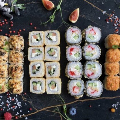 Филадельфия лайт, Запеченный Том Ям, Запеченный с Мидиями, Токио, ролл с лососем, ролл краб.